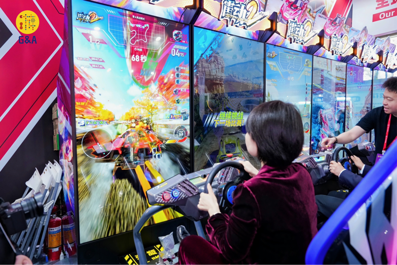 开展首日,人工智能、VR/AR等技术已从展示亮点深度融入游乐产品肌理,成为引爆现场的焦点。搭载AI视觉识别系统的设备可实时捕捉玩家动作;AI故事生成引擎创造出“千人千面”的叙事轨迹;大型空间定位VR技术则让玩家成为虚拟世界的“第一主角”......金马、华立、世宇、阿哩乐、富华、潮玩空间等企业的创新应用打破了传统游乐的体验边界,让海内外专业买家与观众亲身感受科技为产业带来的颠覆性变革,游玩、洽谈氛围热烈。