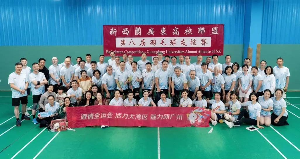 新西兰广东高校联盟第八届羽毛球友谊赛暨首届“纽澳杯”精英赛近日在新西兰奥克兰落幕。来自新西兰和澳大利亚的高校校友、当地体育界人士、国际友人以多种方式为即将开幕的十五运会加油,送上祝福。