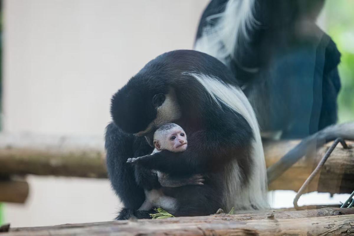 金秋国庆,清远长隆森林王国灵长类家族传来喜讯——一只东非黑白疣猴幼崽于10月1日凌晨顺利降生。清远长隆森林王国黑白疣猴保育员阚涛介绍,新生幼崽“国庆”出生体重约500克,目前由母亲“爱莎”亲自抚育。