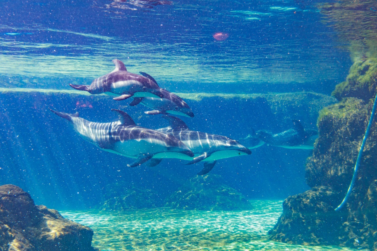 太平洋短吻海豚俗称“太平洋白边海豚”,体背呈黑灰色,腹部为白色,体型较其他海豚偏小,但动作灵敏、游速快,性格外向。保育员徐忠祥表示,这几头海豚宝宝格外活泼,喜爱玩耍,游客常可欣赏到它们追随母亲跃出水面的精彩画面。