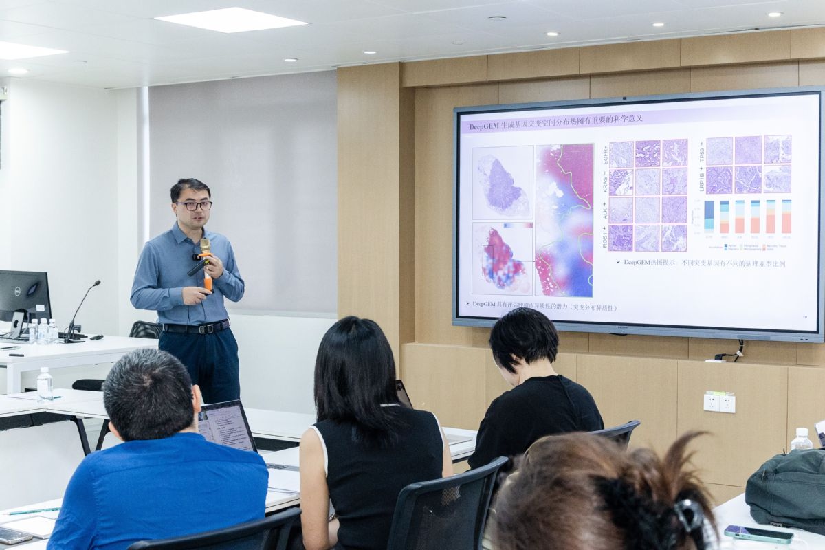 (图为腾讯生命科学实验室高级研究员赵宇博士介绍空间分布热图的科学价值。受访者供图)