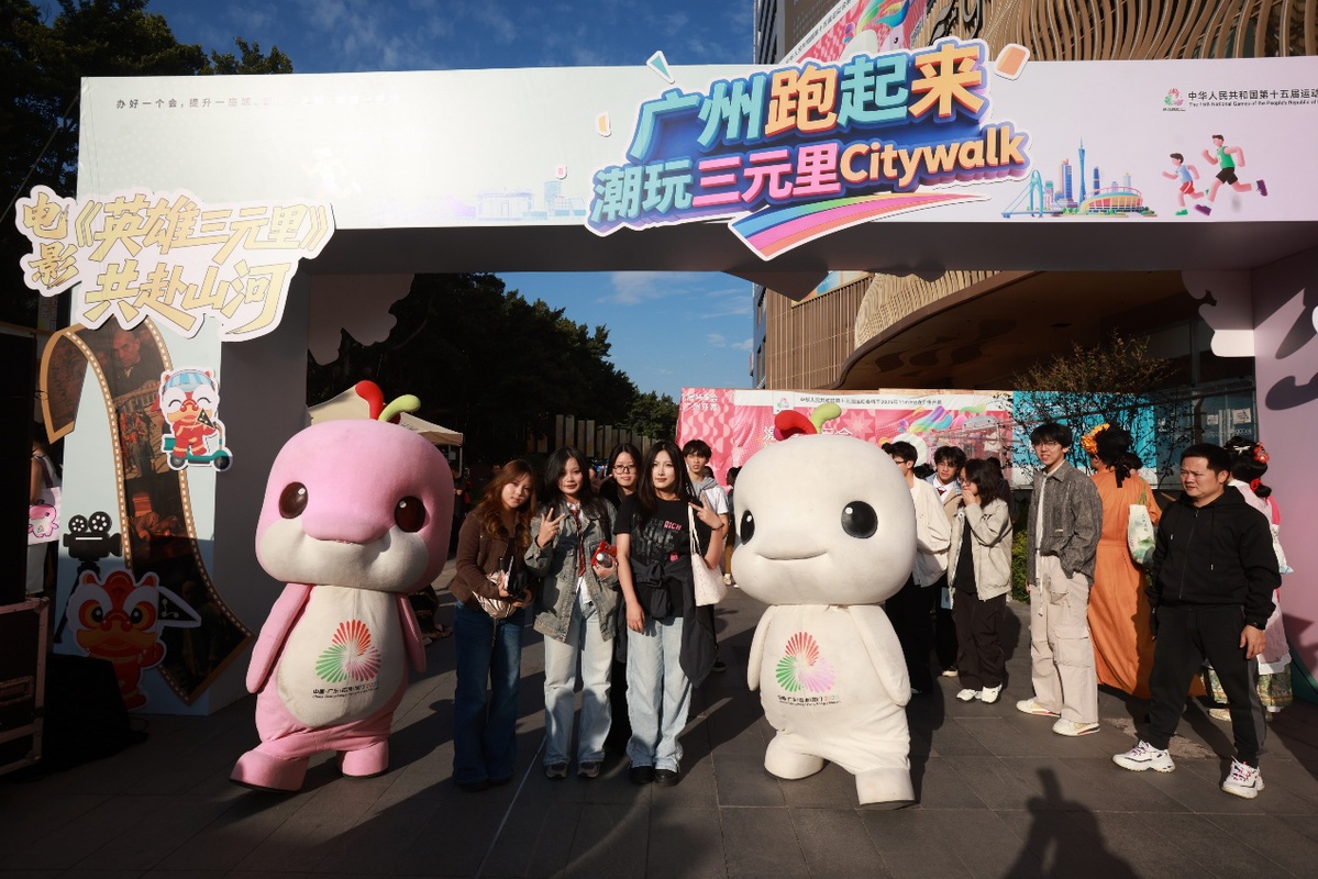 11月22日,“激情十五运 广州跑起来”系列活动之潮玩三元里Citywalk在广州白云新城举行。600余名青年以徒步串联历史与潮流,为即将上映的广东本土爱国主义电影《英雄三元里》造势。