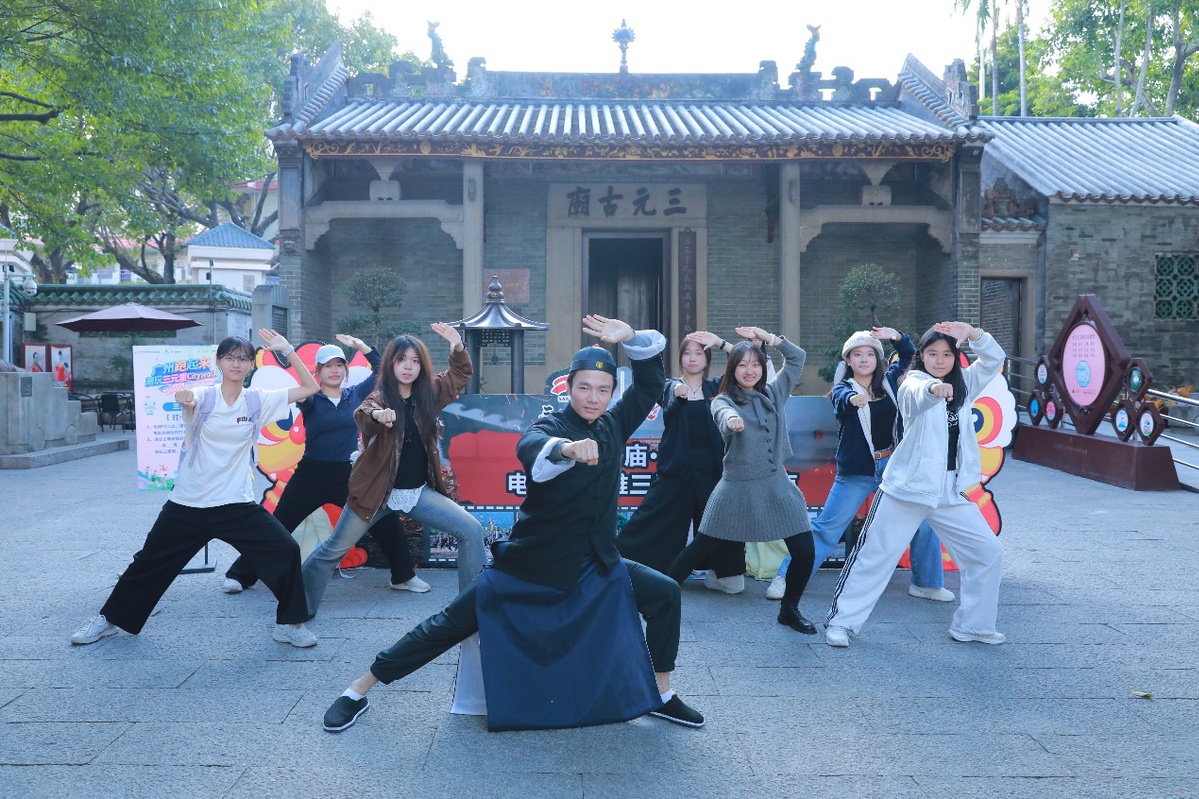 在三元古庙《英雄三元里》拍摄实景地,身着古装的NPC还原电影场景,让青年们瞬间穿越到1841年那个热血沸腾的年代。大家纷纷与NPC创意摆拍,用镜头定格“英雄瞬间”,在朋友圈分享这场跨越时空的对话。
