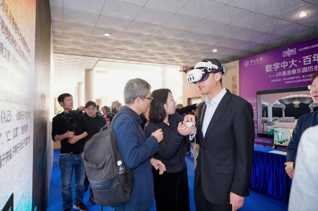 年会首次创设“探界者论坛”与“数字集市”。论坛聚焦学科热点,推动跨领域对话;“数字集市”则集中展示了来自中山大学、北京大学、武汉大学、南京大学、中国人民大学、华中师范大学等多所高校十余家机构或科研团队的数字人文前沿成果。参观者可通过VR沉浸式体验历史场景,也可以操作AI工具进行文献分析,同时可现场感受AIGC技术对文化遗产的活化再现,在互动中体会数字与人文交融的创新魅力。