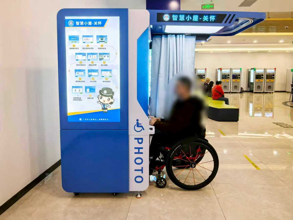据悉,“关怀版智慧小屋”是广州公安出入境管理部门聚焦有需要人士办证需求的创新举措,以科技赋能传递平等尊重,切实服务残特奥会的举办。申请人可无障碍行驶至“关怀版智慧小屋”,自助完成信息录入、身份认证等;在证件照拍摄时,U形感应门帘会自动闭合,提供私密、安全、整洁的拍照背景;完成拍照后,申请人可继续根据语音提示,完成个人签名和信息核对等受理流程。此外,智慧小屋办证界面更换为大字体、高对比度布局,设有国语、粤语两种语言的全流程语音引导。